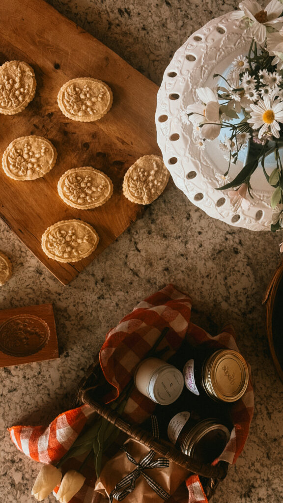I pressed these into a mold and dusted them in powdered sugar and honestly could not stop looking at them. Tucked into a little spring basket with some jam from the pantry and a candle they make the most perfect spring equinox gift for someone you love.
